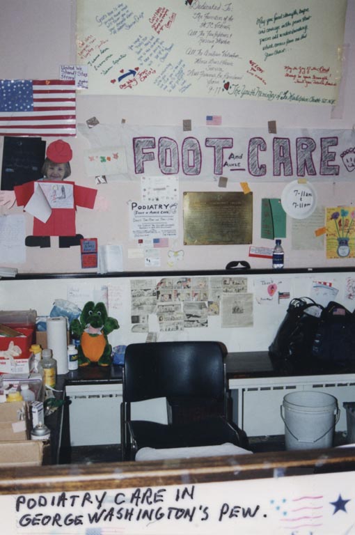 Images and memories 2001-2011: The images within the photo gallery below were assembled over the past 10 years. Many of the photographs were graciously contributed by the author, and St. Paul’s Chapel support volunteer and podiatrist, Dr. Arthur Gudeon. We wish to thank all who’s photos have found their way onto this site, and please contact us with corrections or if we’ve missed mentioning your name as a contributor. Thank you and God bless.